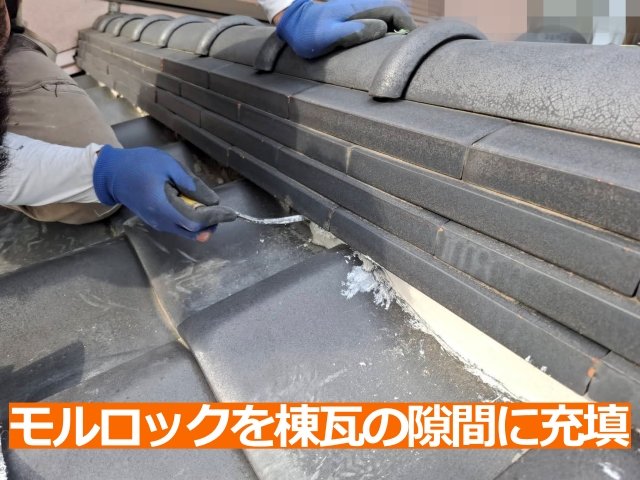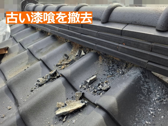 あわせて鬼巻き・棟尻・葺き止め漆喰も交換し、屋根全体の防水性を回復させるプランで工事を行います。